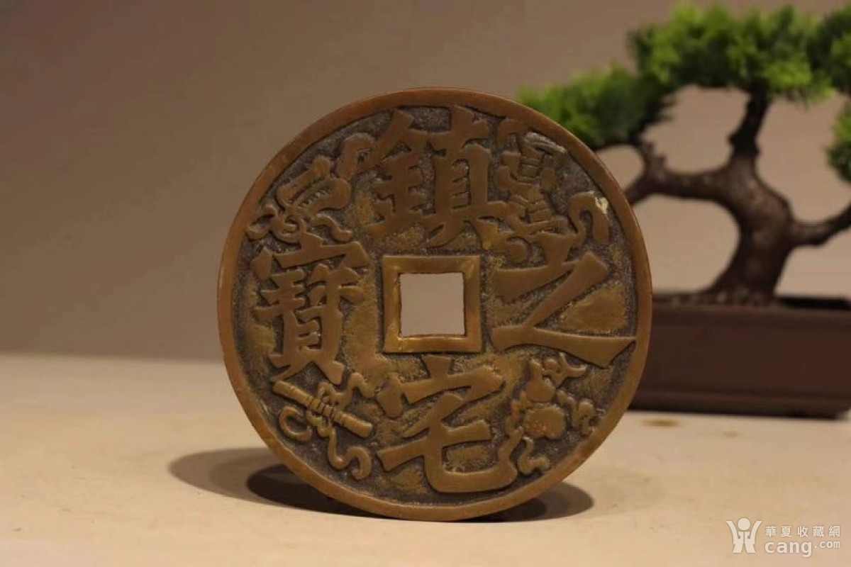 清大铜钱,全品_^雕工精细,有去邪镇宅之用,直径14。