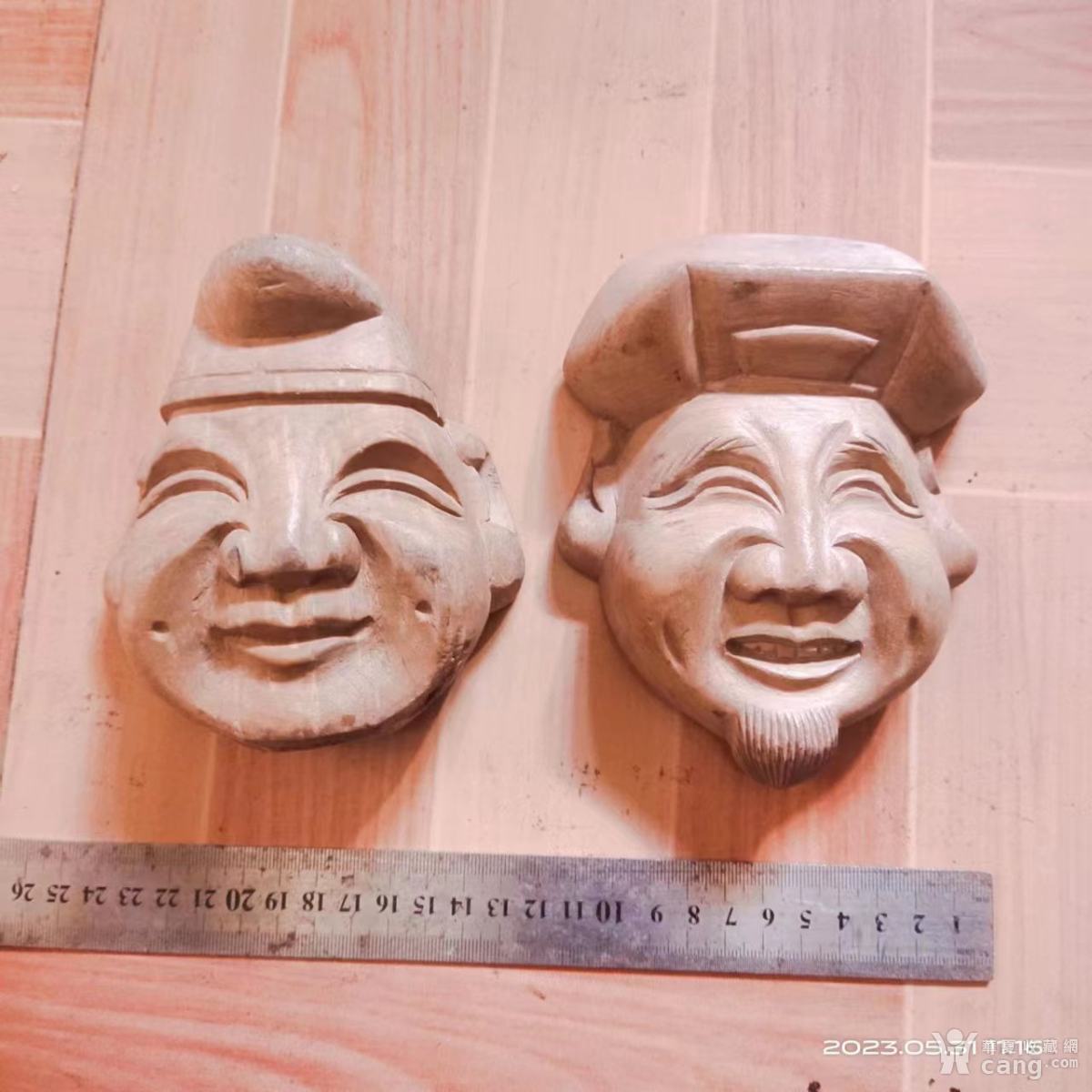 每个高15长12厚6厘米,八十年代樟木雕人物头像两个,手工雕