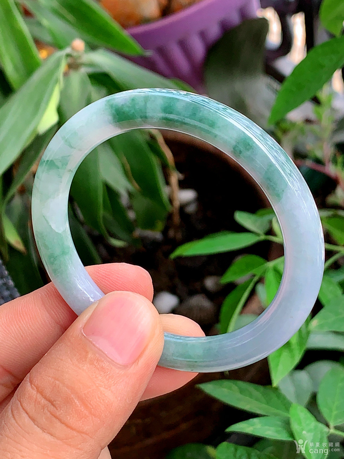 缅甸天然翡翠A货冰透水润春带彩圆条手镯52.8圈口