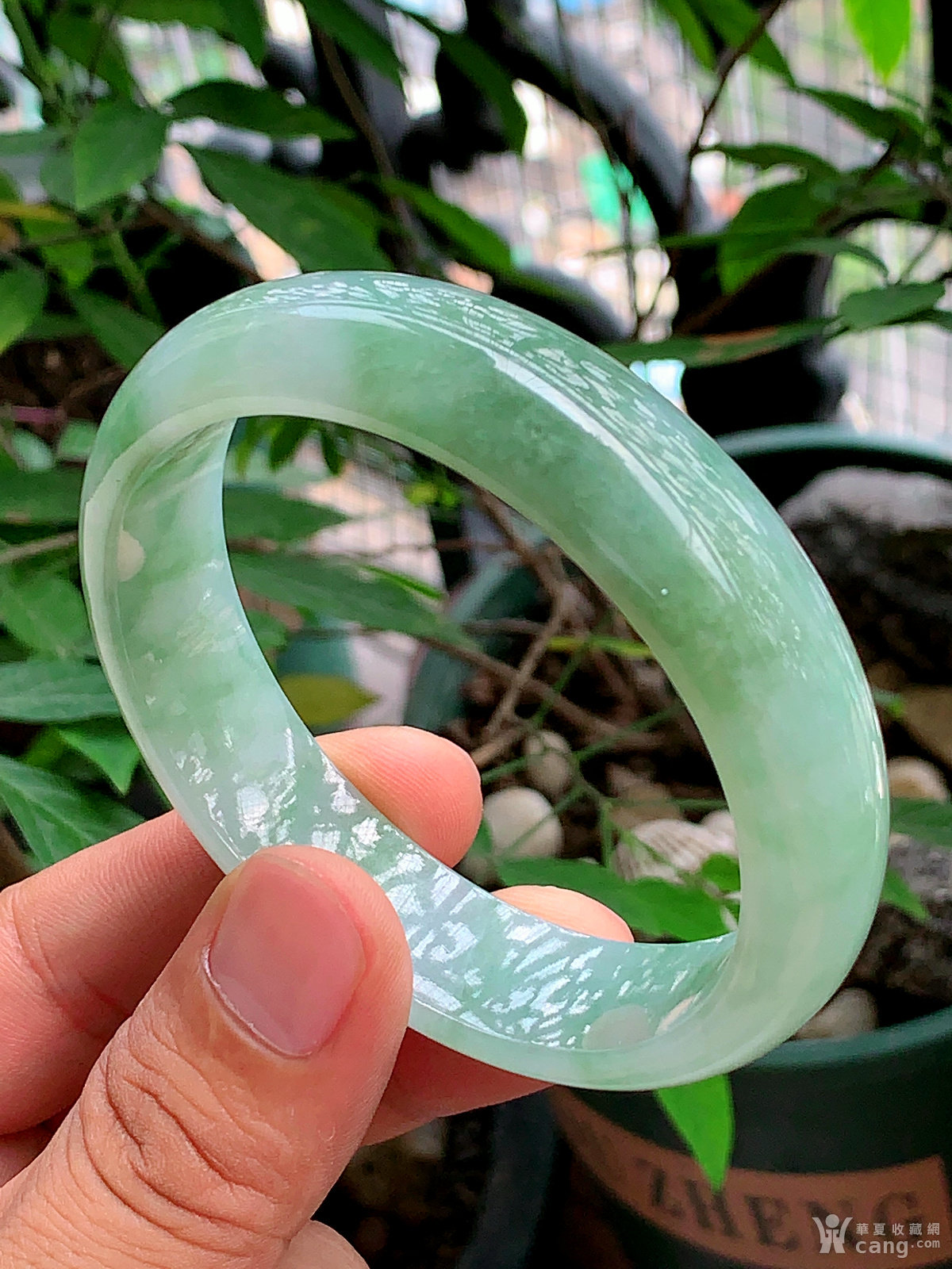 缅甸天然翡翠A货冰透水润大圈口飘花宽边手镯62.1圈口