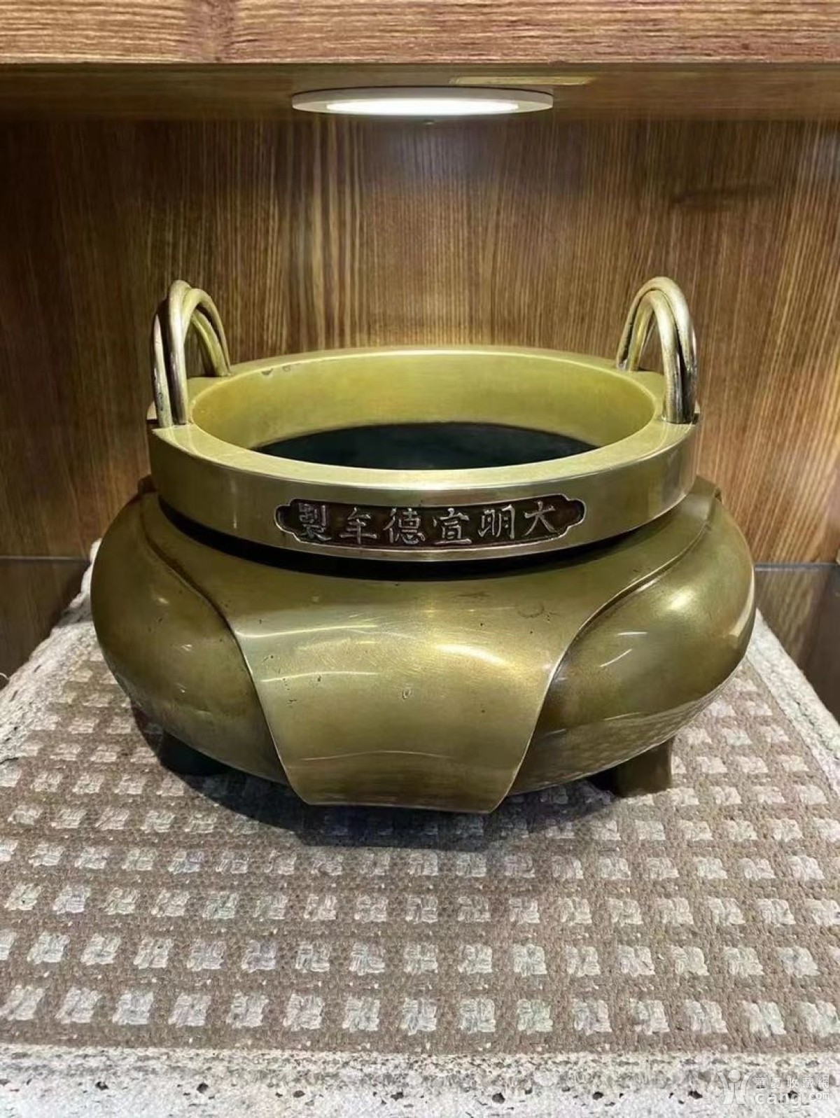 旧藏珍品 铜 拓金 文案摆件【象鼻财神】倒流