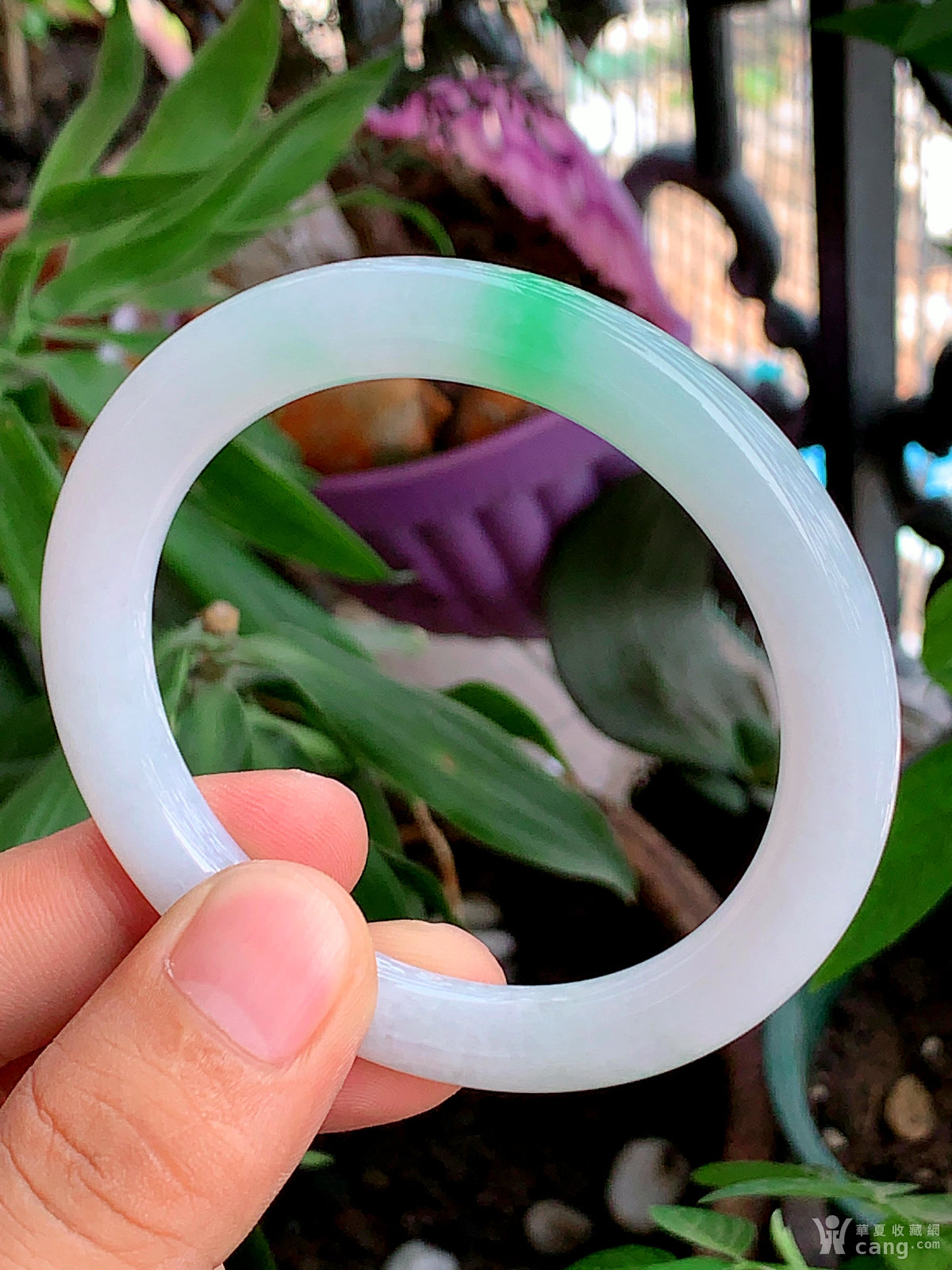缅甸天然翡翠A货冰透水润飘阳绿圆条手镯59.3圈口