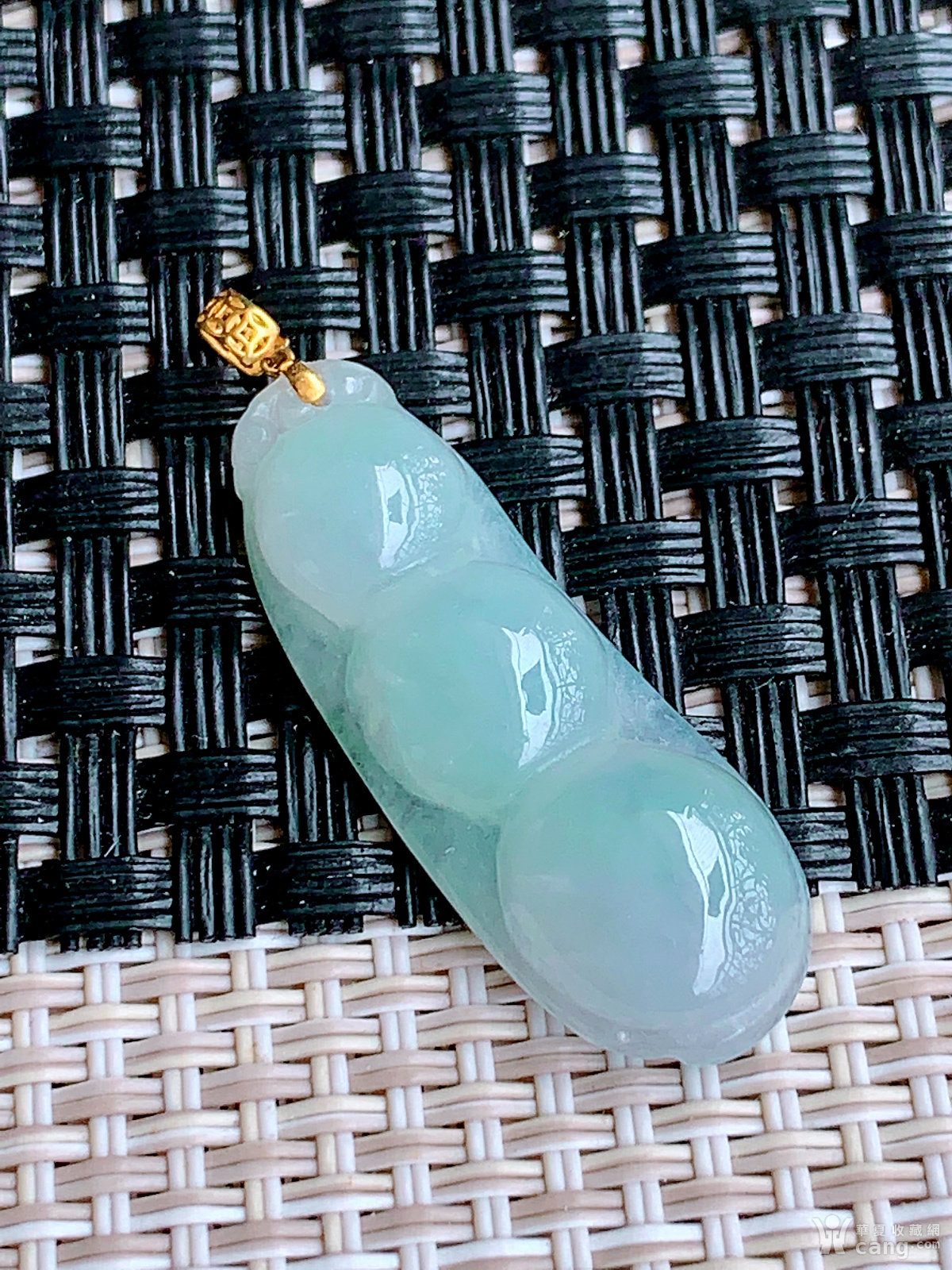 缅甸天然翡翠A货18k金扣冰透水润四季豆吊坠