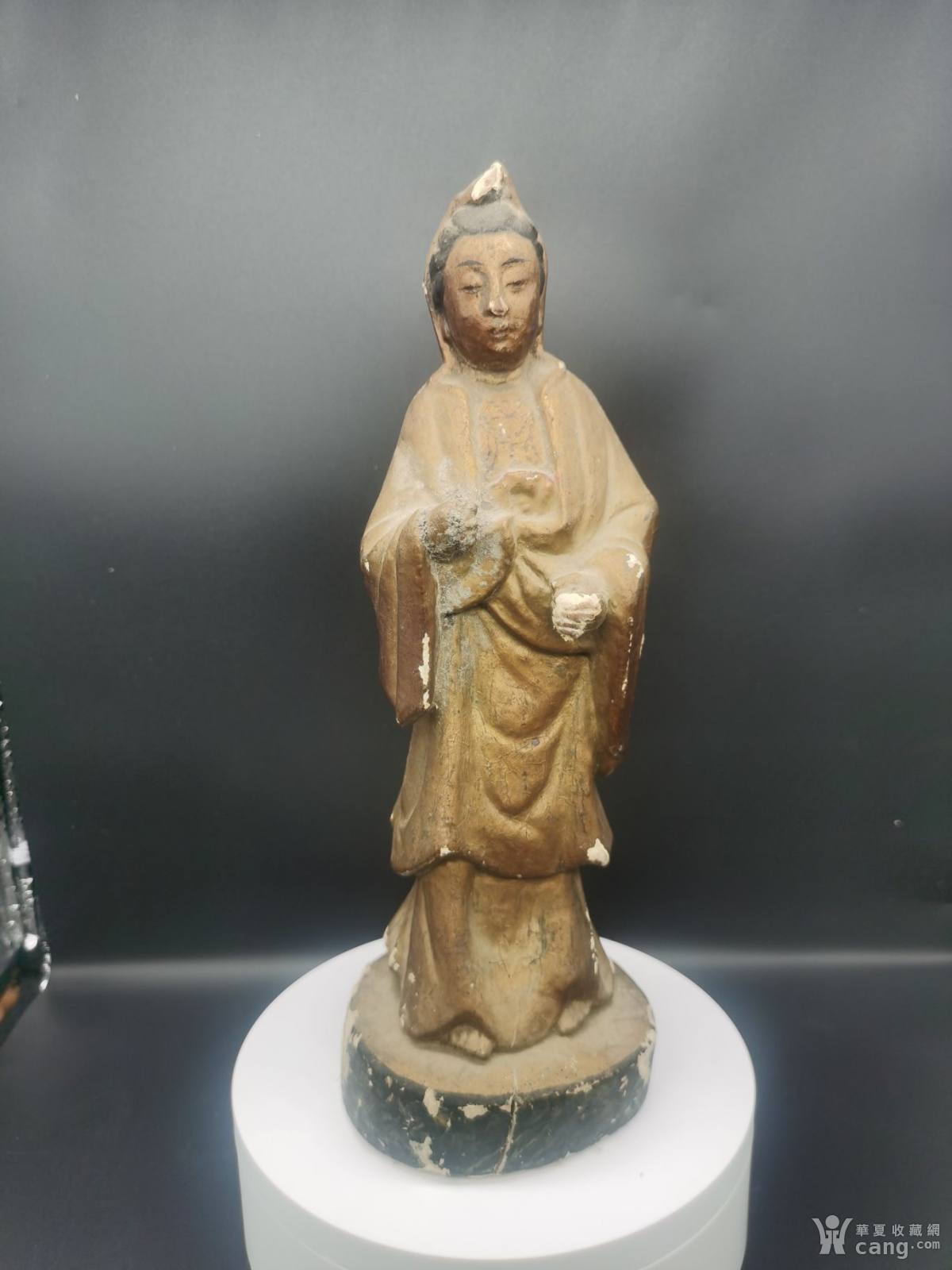 民国漆灰金观世音木雕立像
