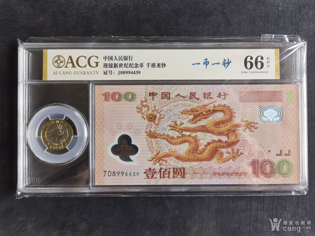 ACG评级66EPQ-2000年世纪龙钞100元+纪念币一套
