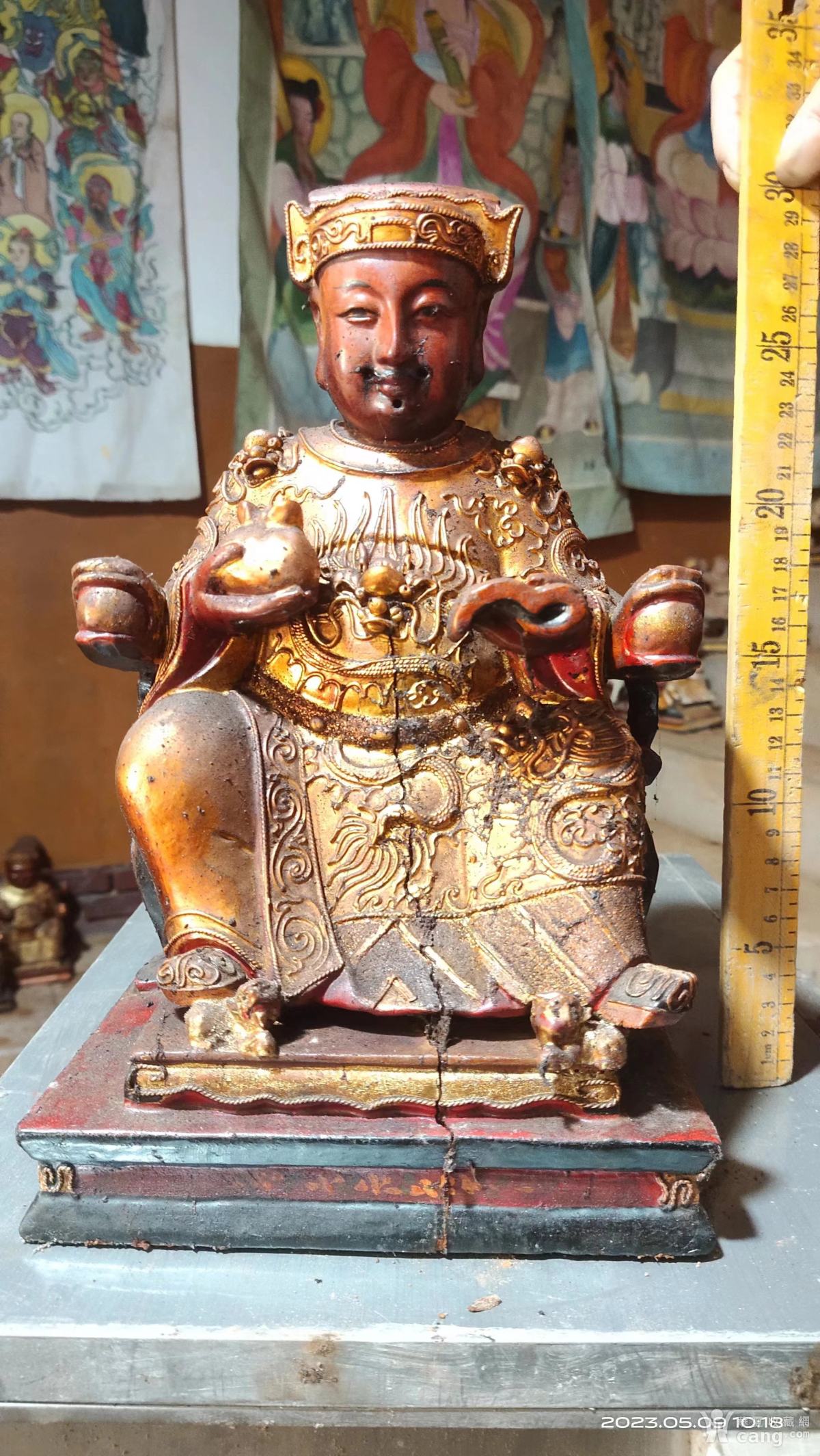 高度30厘米,被香火熏蒸的挺老气的樟木雕神像菩萨佛像手捧印书