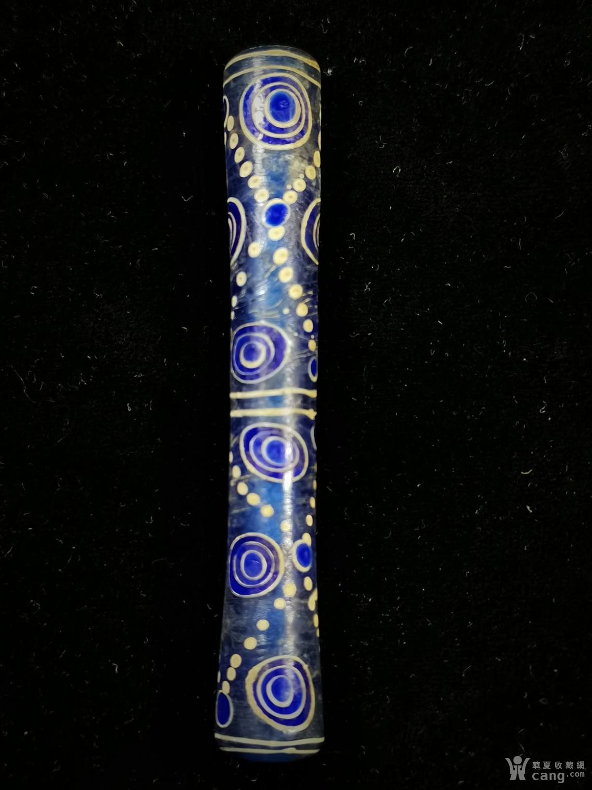 蜻蜓眼工艺琉璃束腰管,工艺精美,全品完整。规格:长70*径1