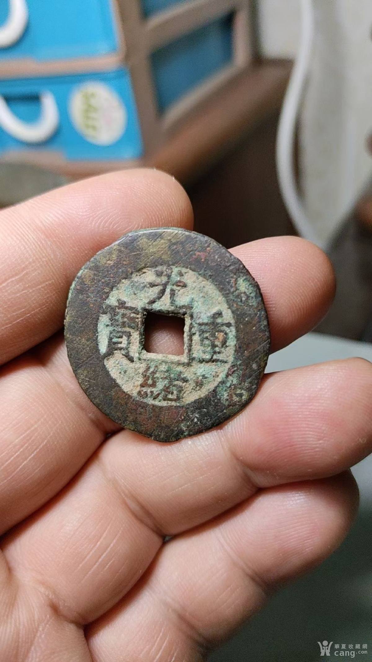 青花瓷器盖子,有小磕,有冲线如图所示