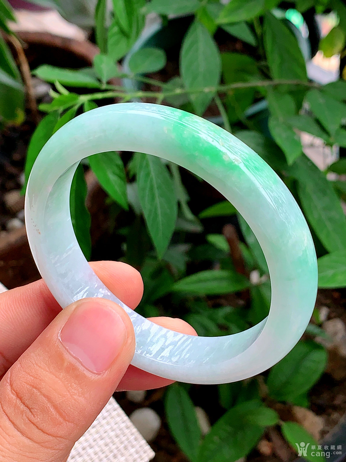 缅甸天然翡翠A货冰润飘花宽边手镯58圈口