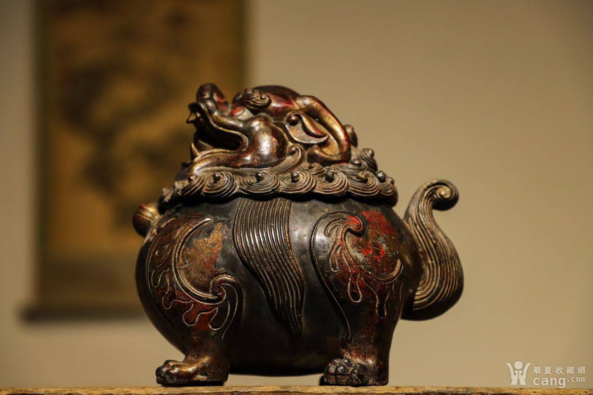 狻猊兽 熏香炉 铜鎏金.高23长23宽16厘米 龙生九子之一