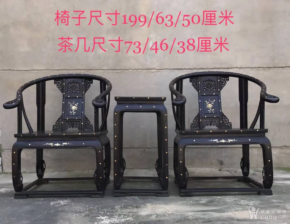 血檀木镶嵌贝壳,吉祥有余,黄宫椅三件套,满身镶嵌,做工精细,