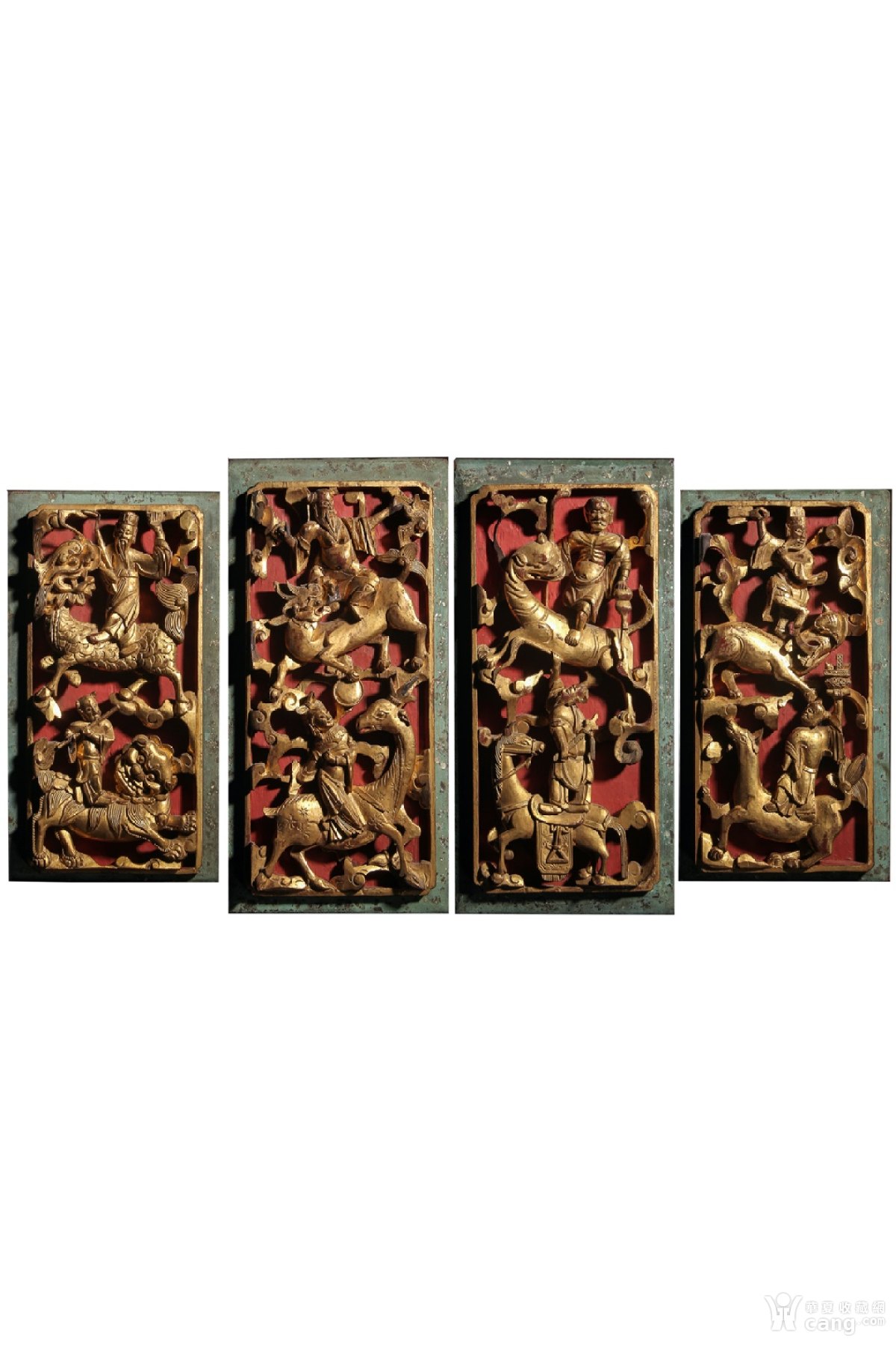 清代 楠木漆金立体镂雕八仙献瑞图文房花板挂屏(