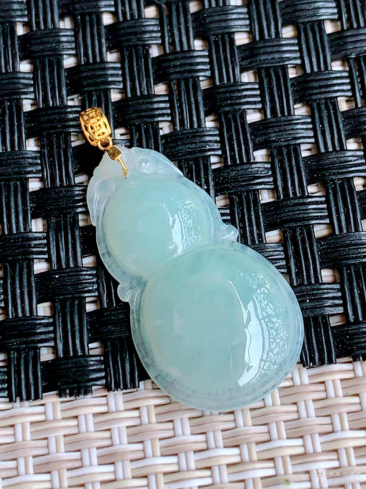 缅甸天然翡翠A货18k金扣冰透水润葫芦吊坠