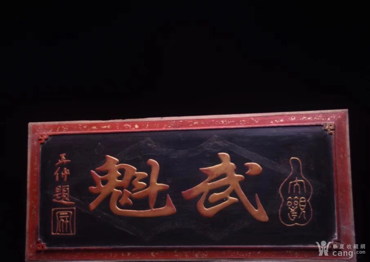 珍藏~老楠木挂匾《武魁》高28 长63厘米 字体鎏金 流畅