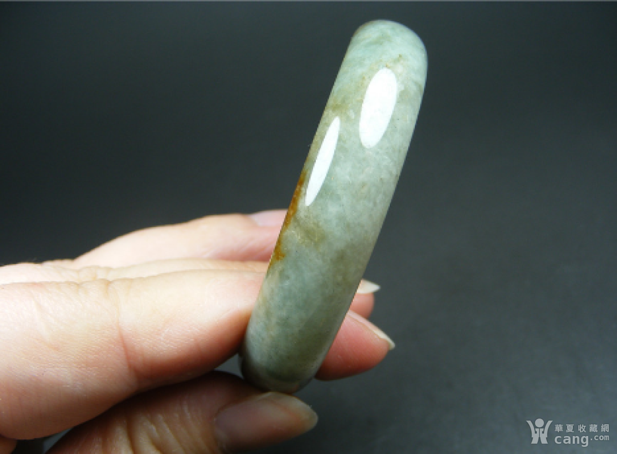 少几十年的老坑A货冰种淡绿色局部带黄翡翡翠宽边厚肉大圆手镯