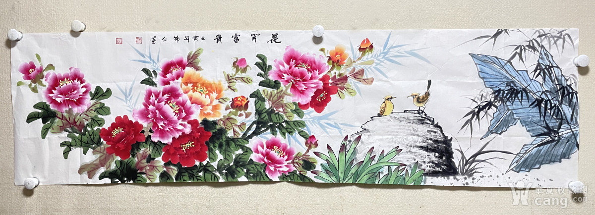 六尺对开保真韩普俊,韩仁国家一级美术师牡丹竹子芭蕉7花开富贵