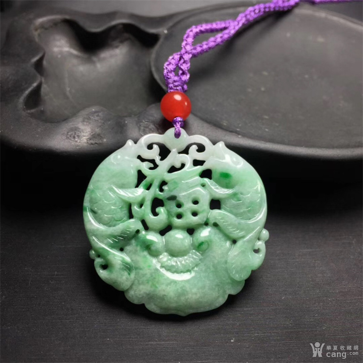 D523创汇期糯冰种飘绿翡翠双鱼福字圆佩