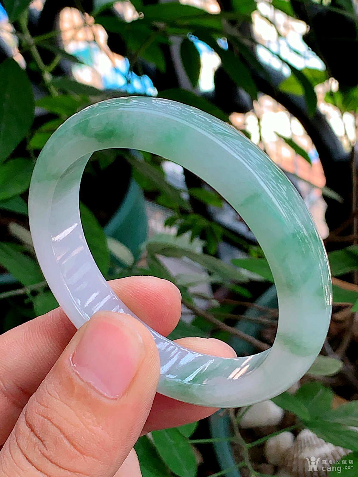 缅甸天然翡翠A货冰透水润飘花宽边手镯55圈口
