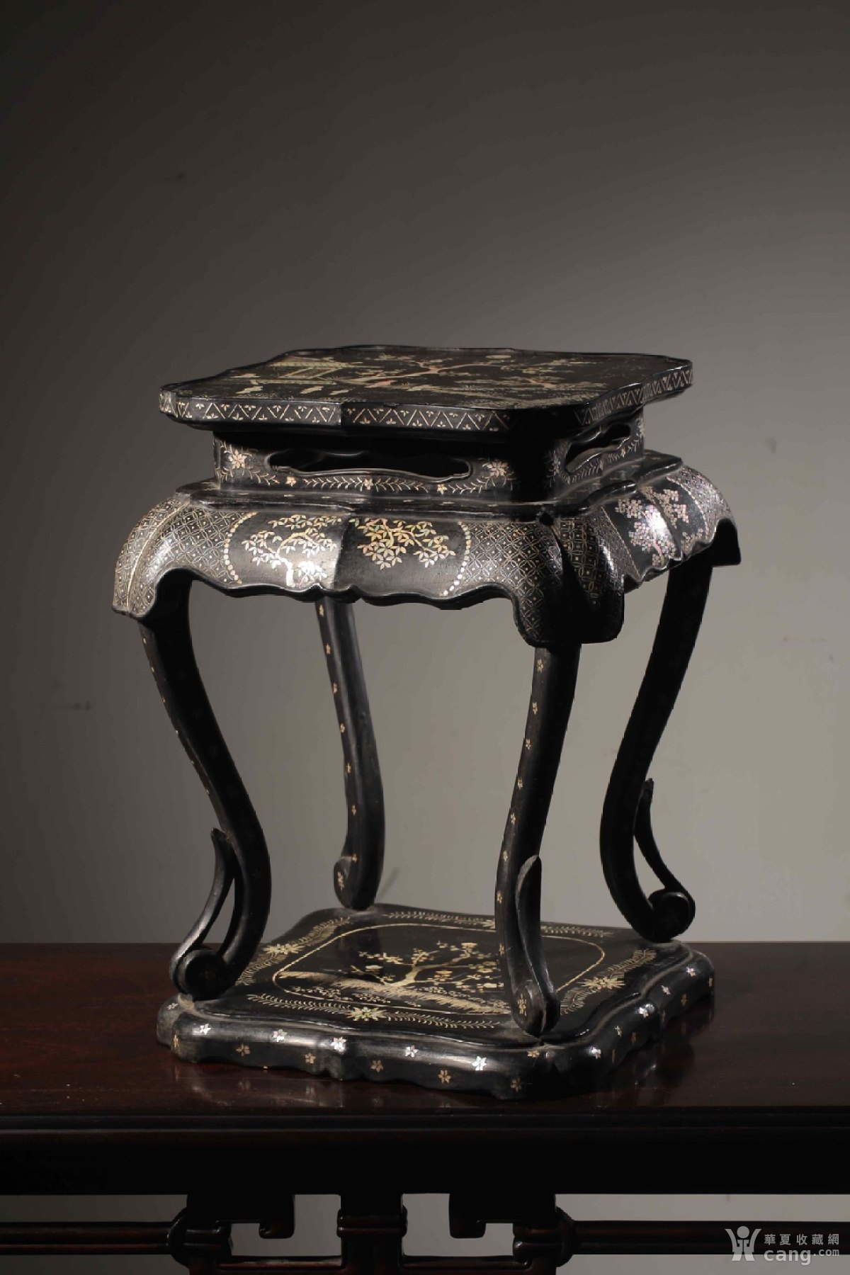 海外回流 木胎黑漆嵌螺钿人物故事束腰香几