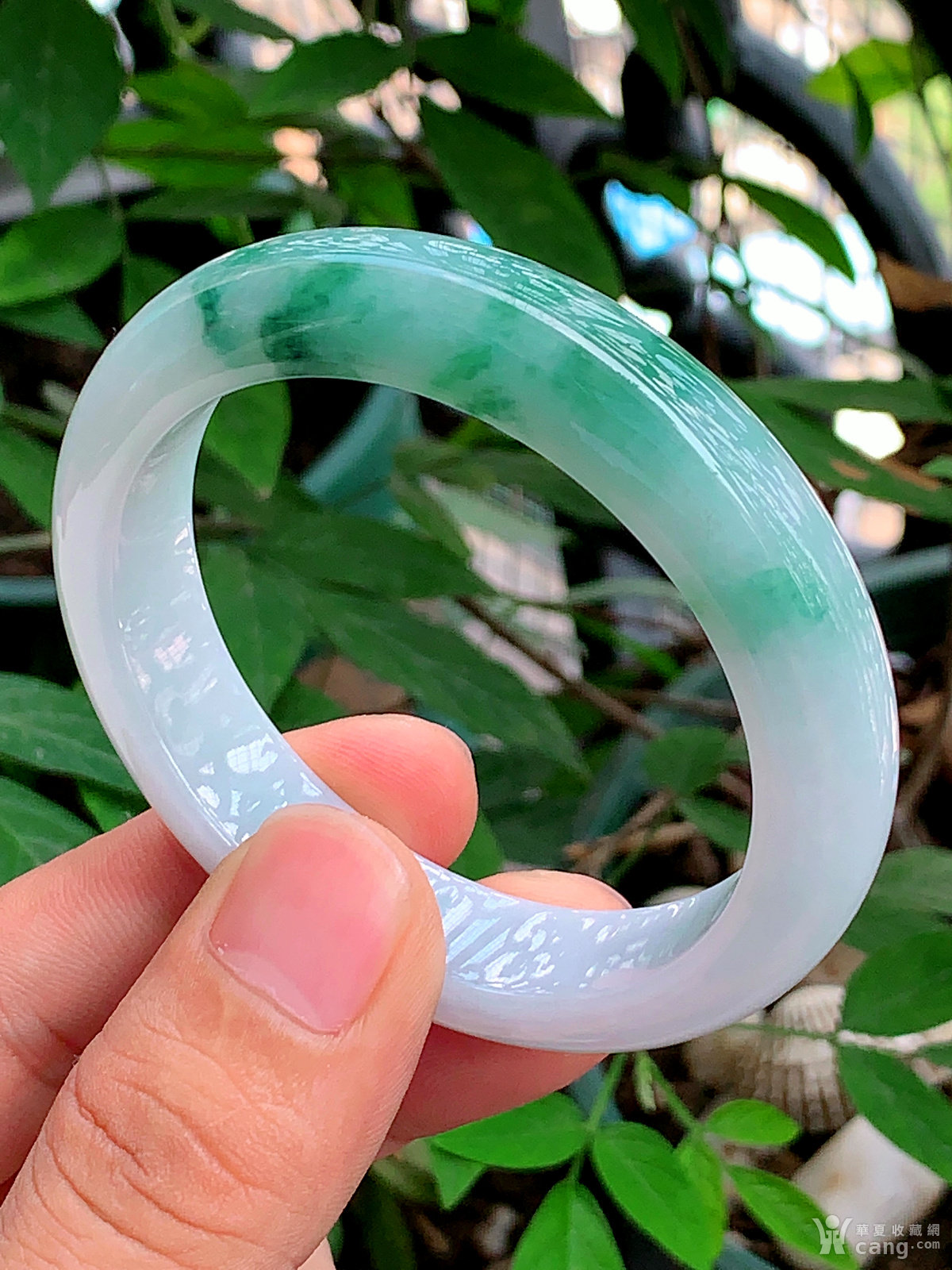 缅甸天然翡翠A货冰透水润飘花宽边手镯55圈口