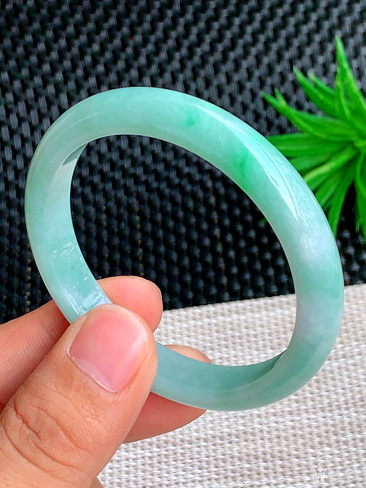缅甸天然翡翠A货冰润飘花宽边手镯57.6圈口