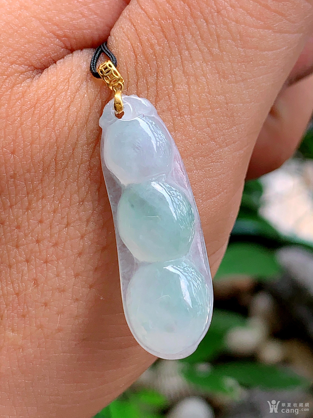 缅甸天然翡翠A货18k金扣冰透水润四季豆吊坠