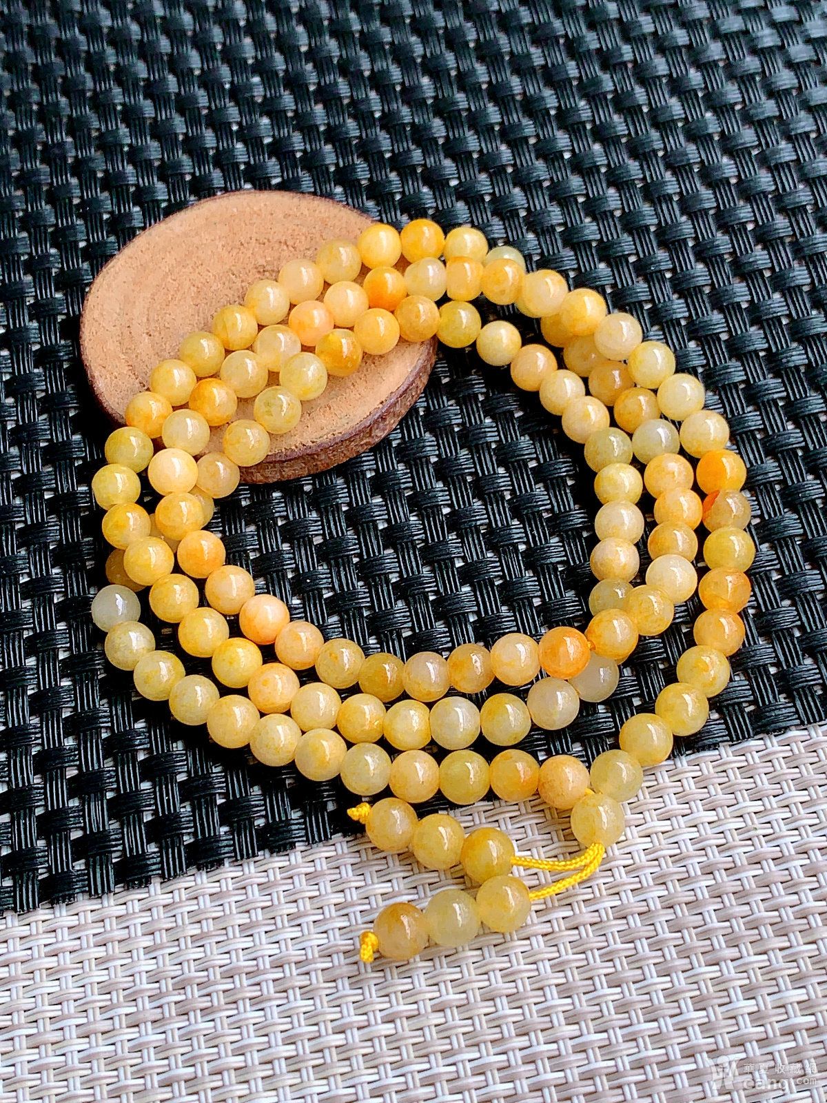 缅甸天然翡翠A货冰润黄翡圆珠项链