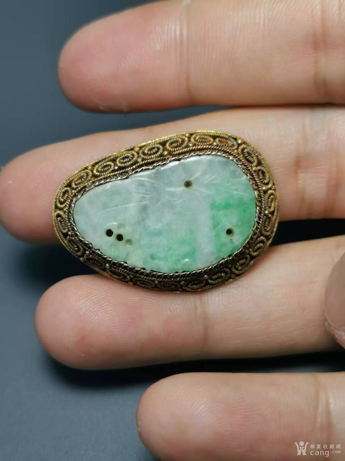 民国翡翠银鎏金胸针