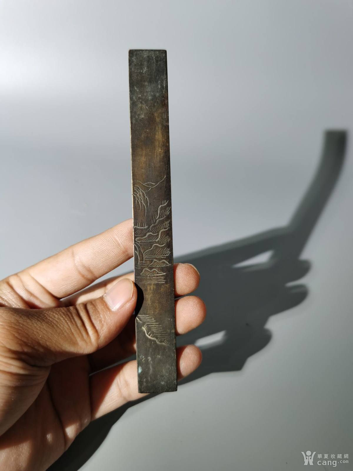 民国刻山水铜镇尺