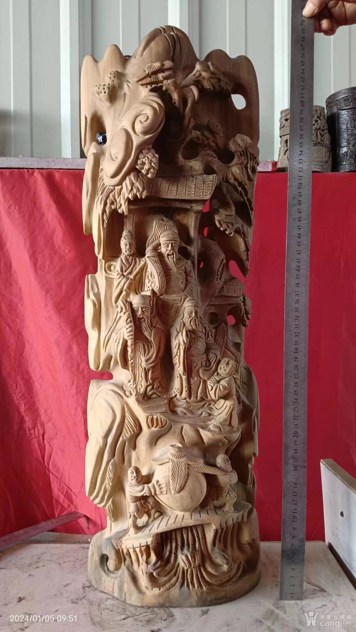 重16斤,高70长23宽12厘米,无漆绿檀木雕福禄寿共七个人