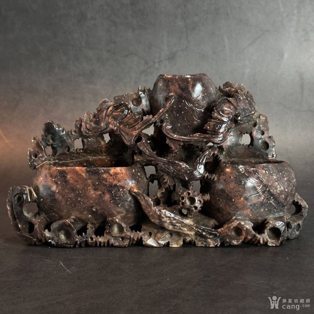清代寿山石精雕花卉文房笔筒笔洗摆件