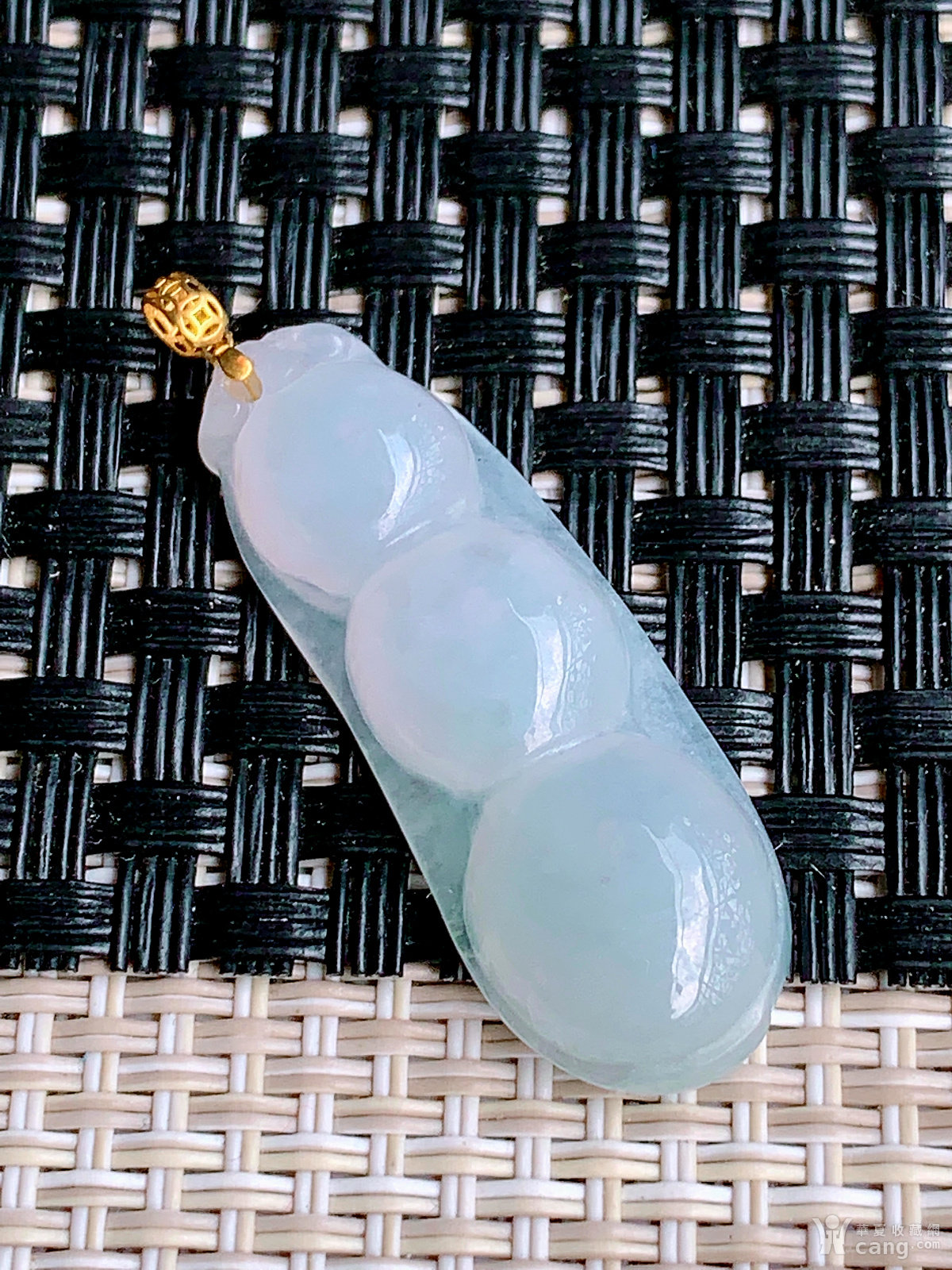 缅甸天然翡翠A货18k金扣冰透水润四季豆吊坠