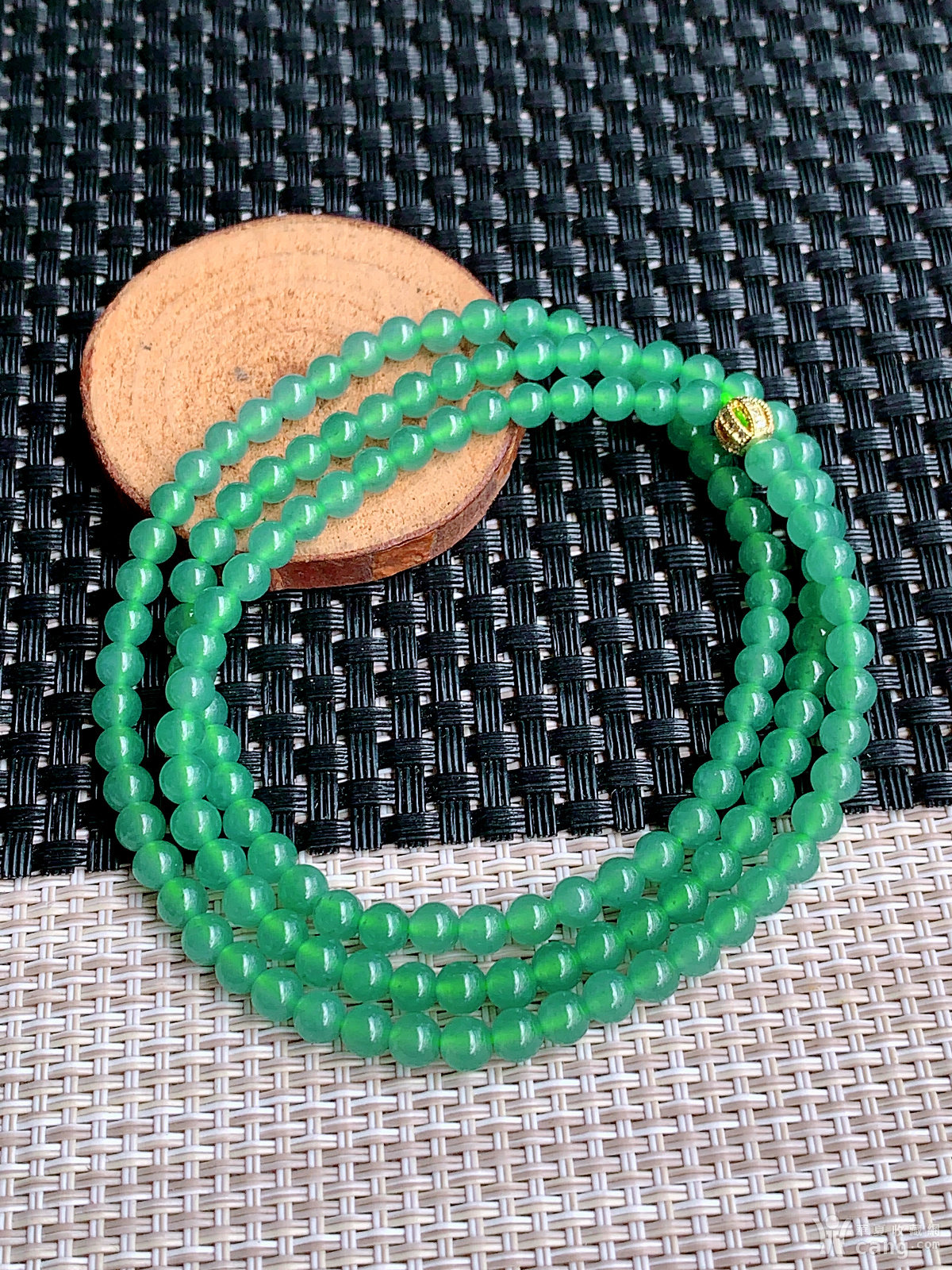 缅甸天然翡翠A货冰透水润满绿圆珠项链