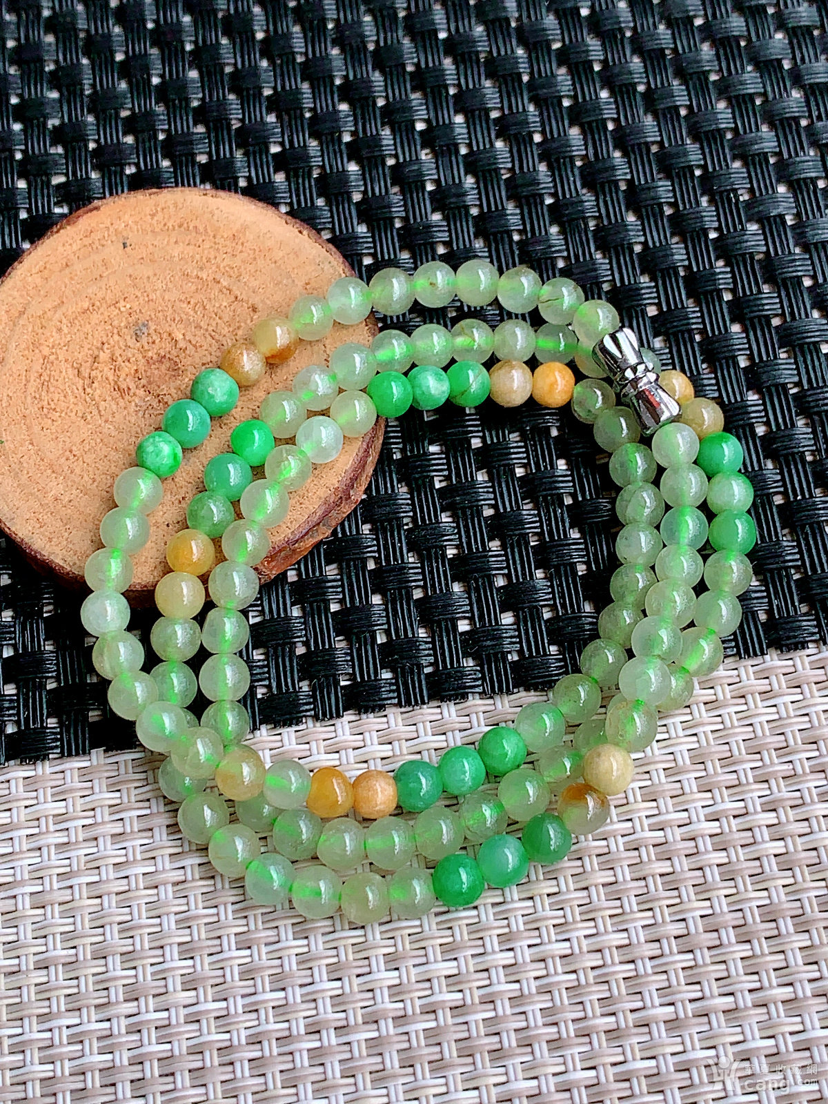 缅甸天然翡翠A货冰透水润双彩圆珠项链