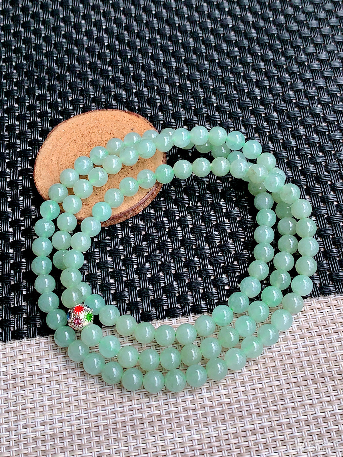缅甸天然翡翠A货冰透水润满绿圆珠项链