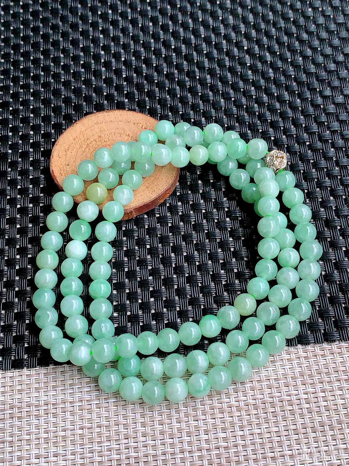 缅甸天然翡翠A货冰润满绿圆珠项链