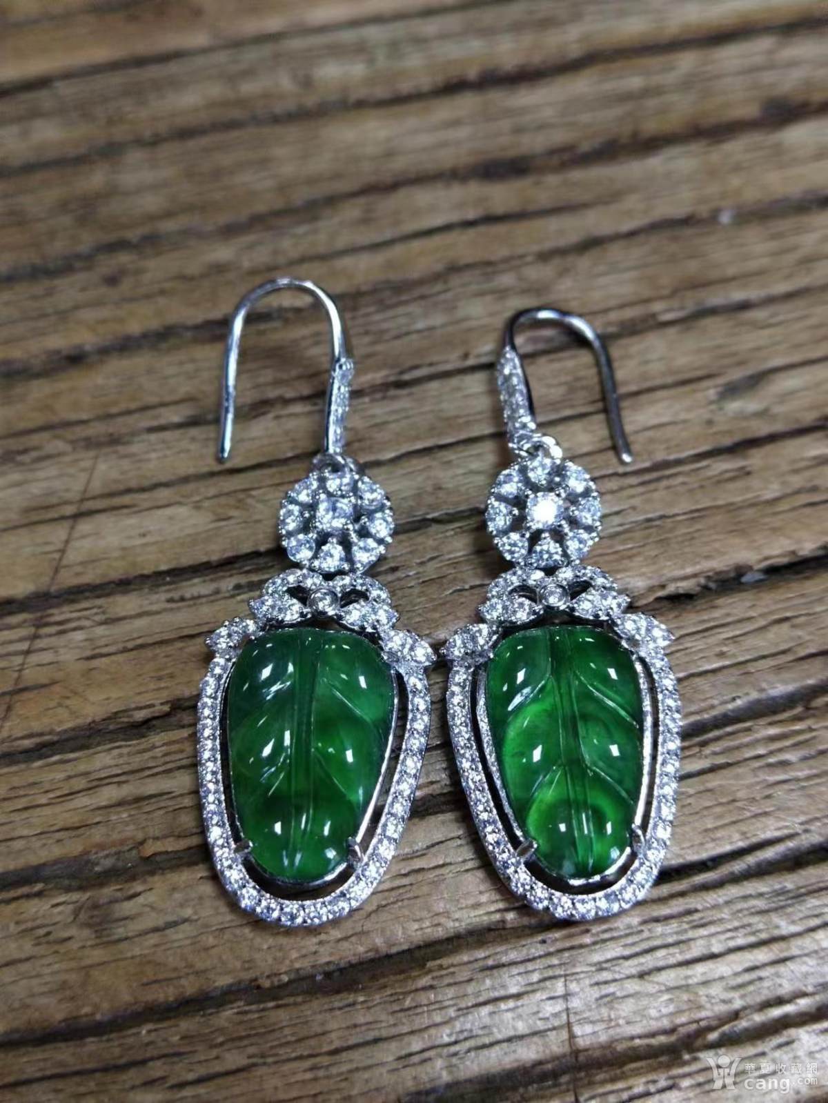 (年底特惠)天然满绿亮银镶嵌钻石翡翠耳坠