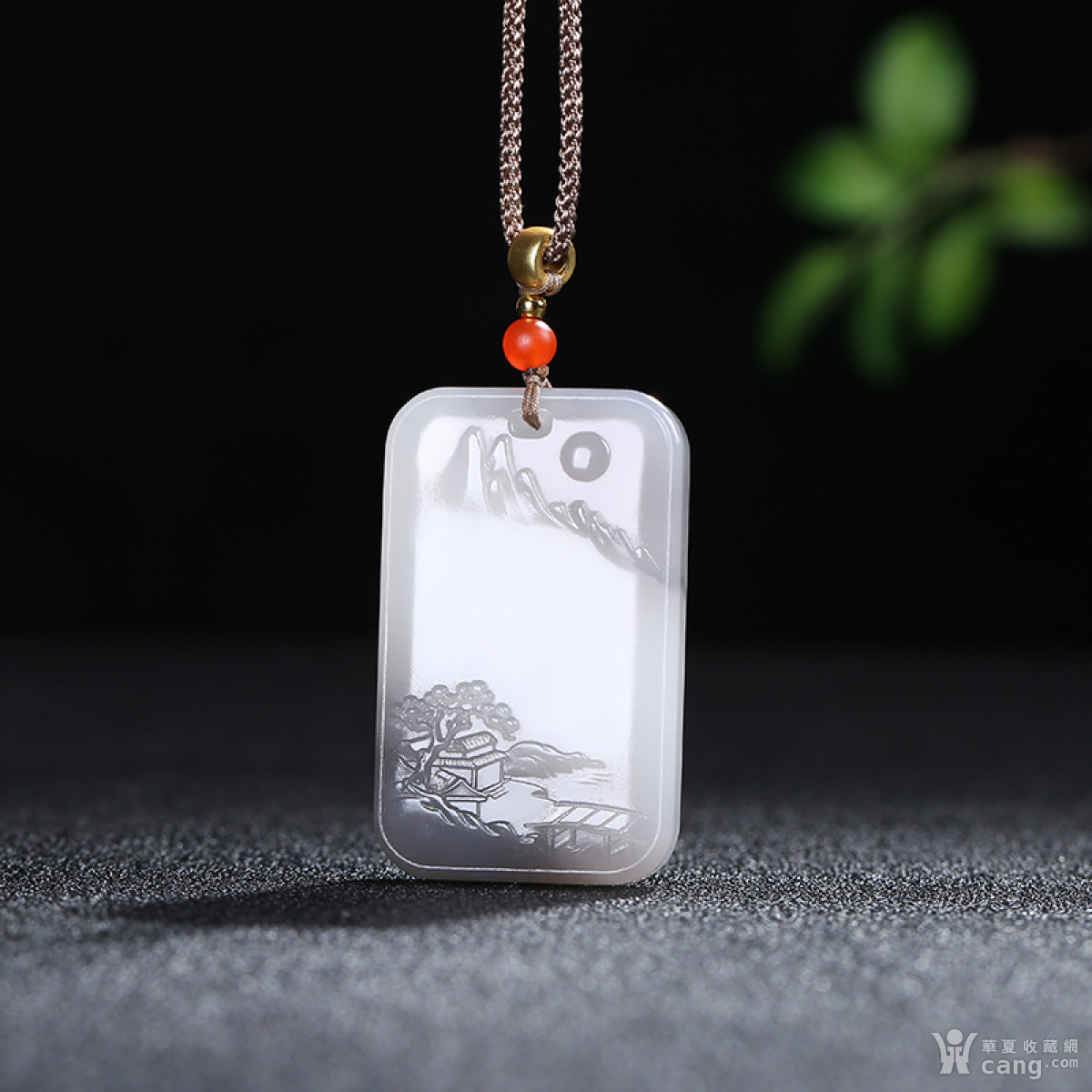 富贵山居 天然玉石和田玉烟青烟紫白玉山水牌子吊坠30.76g