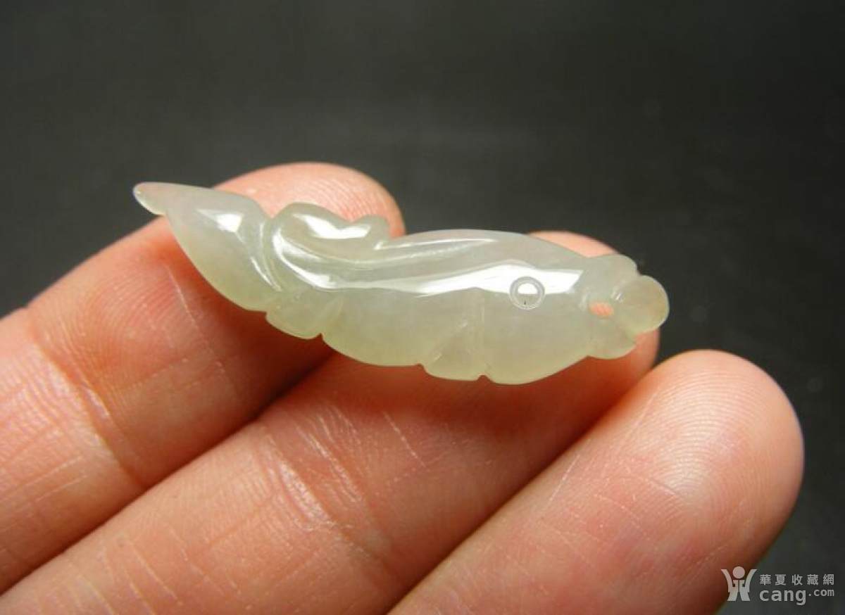 C26 几十年的A货冰种淡绿色翡翠手工雕老雕法带孔小鱼坠