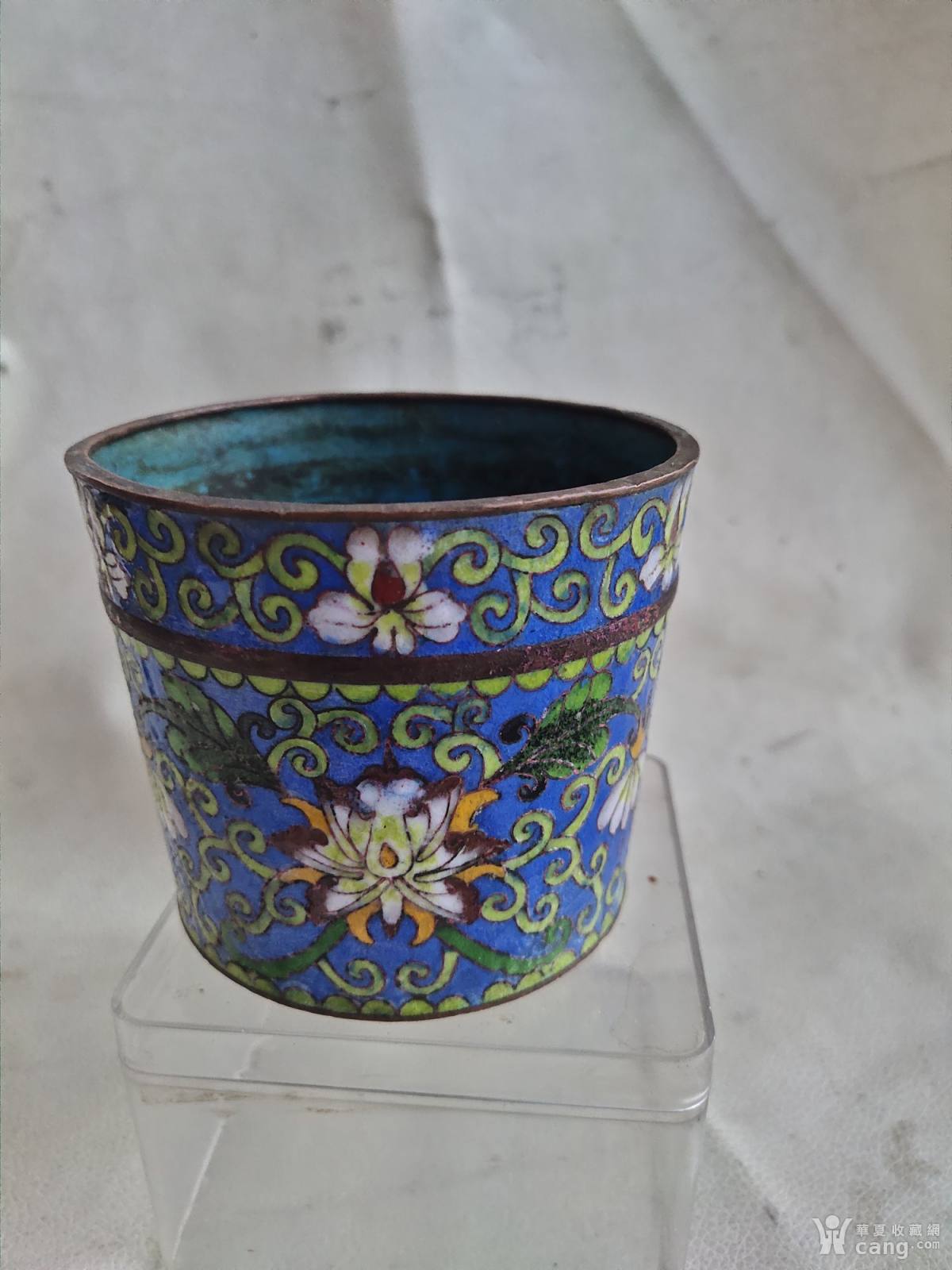 清代掐丝珐琅西番莲纹小案缸一个,完整。