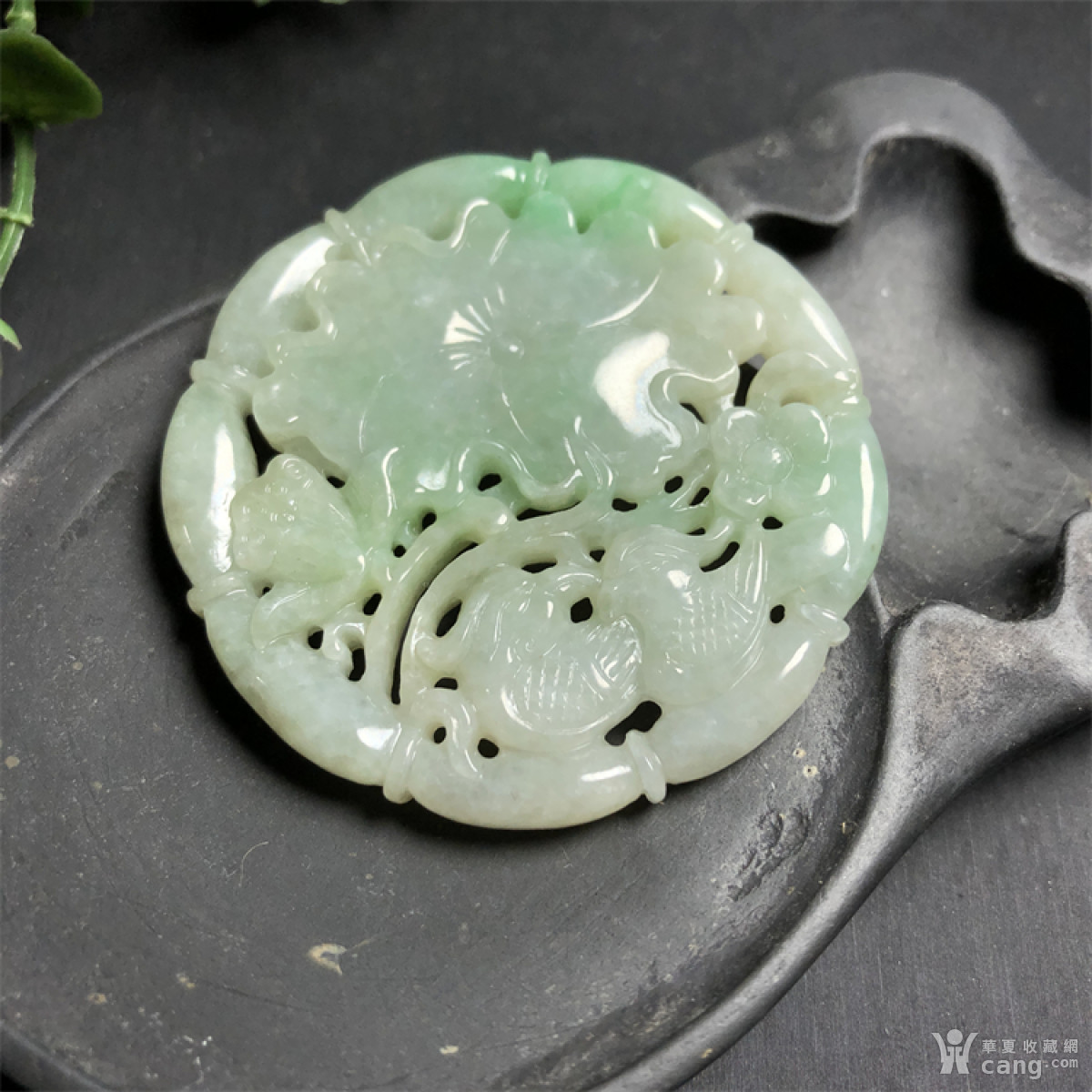 D495创汇期糯冰种飘绿翡翠荷叶鸳鸯圆佩