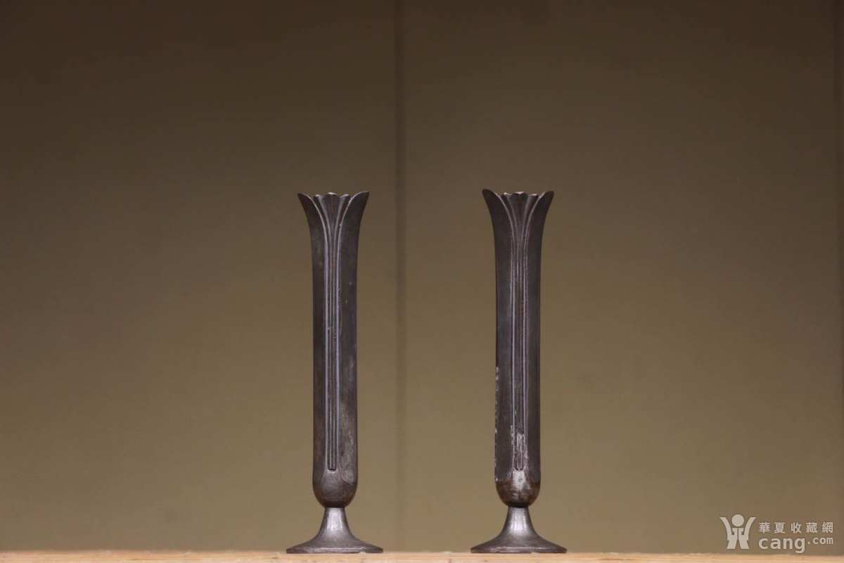 花插 难得成对,器型别致,线条流畅,下有底座,铜,清,