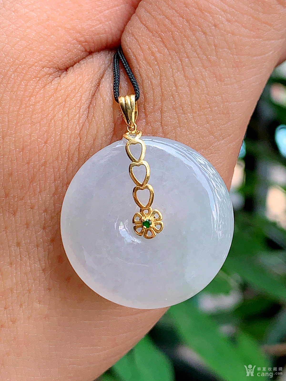 缅甸天然翡翠A货18k金扣冰透水润平安扣吊坠