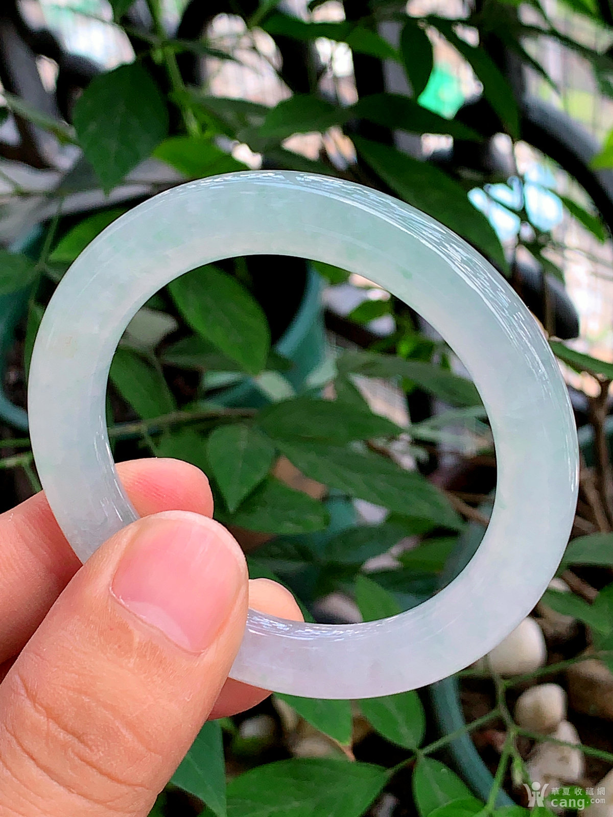 缅甸天然翡翠A货冰透水润飘花圆条手镯52.2圈口