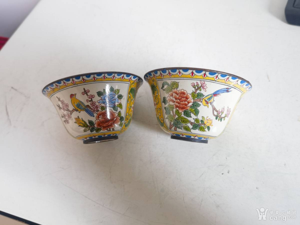 铜胎珐琅彩茶杯一对,口径9.3,高5.2,全美品相!