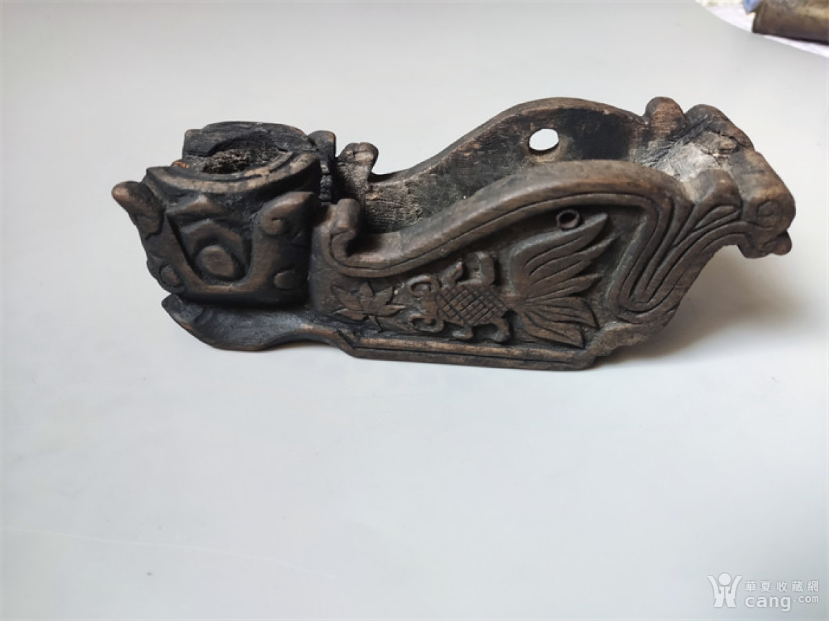 清代木雕莲花金鱼凤鸟纹残墨斗