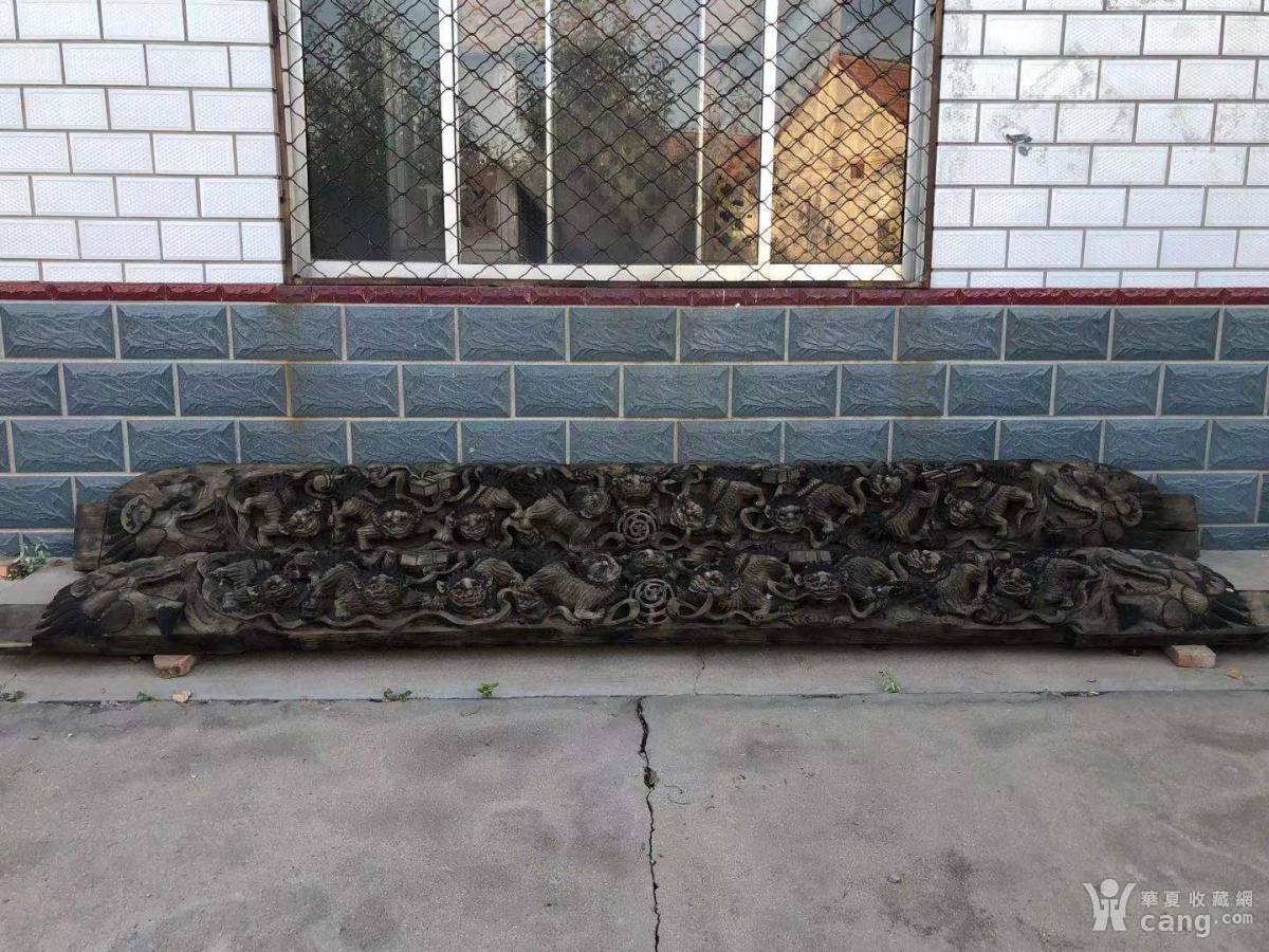 清代,精品大梁一对,雕刻狮子滚绣球,高浮雕,镂空雕,雕工精美