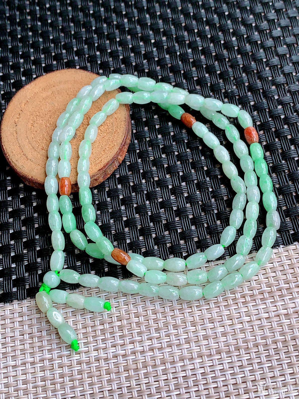 缅甸天然翡翠A货冰透水润双彩米珠项链