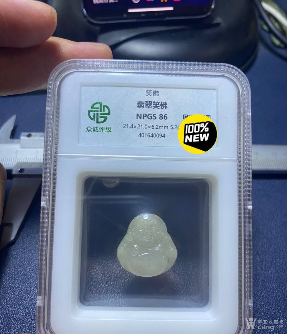 翡翠笑佛,种水不错的翡翠佛,众诚评级的盒子很厚很大,保真天然