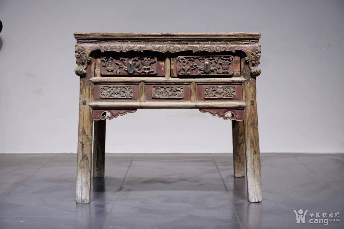 明代朱红漆瘿木面【供桌】;整器古朴典雅,独装芯瘿木面板,瘿如